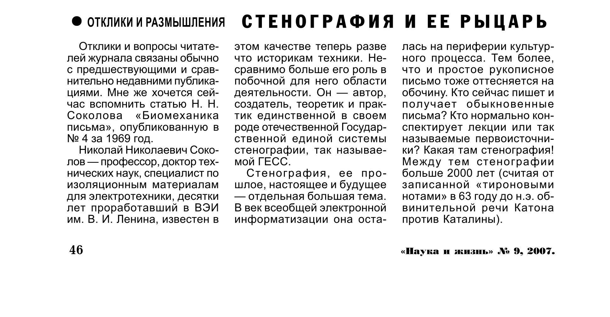 Мне же хочется сейчас вспомнить статью Н. Н.Соколова «Биомеханика письма», опубликованную в № 4 за 1969 год.
